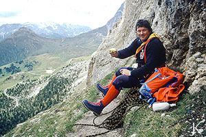Bergführer Ludwig auf der "Rampa", Dolomiten |